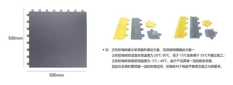 軟質(zhì)絕緣地板能夠?qū)⒚總獨立的地板快速拼裝成整體地面,專利型鎖扣結(jié)構(gòu)連接能力更強,可承受叉車的來回碾壓。施工過程中無需膠黏劑等材質(zhì),具有施工簡單快速、色彩絢麗、美觀大方、可移動性強、可重復使用等特點。