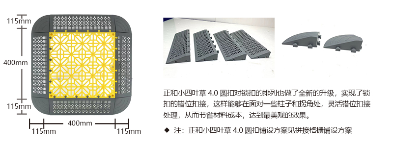 正和小四葉草4.0圓扣采用窄筋道設計,上方不會殘留泥沙,保證了車間地面的干凈和整潔。